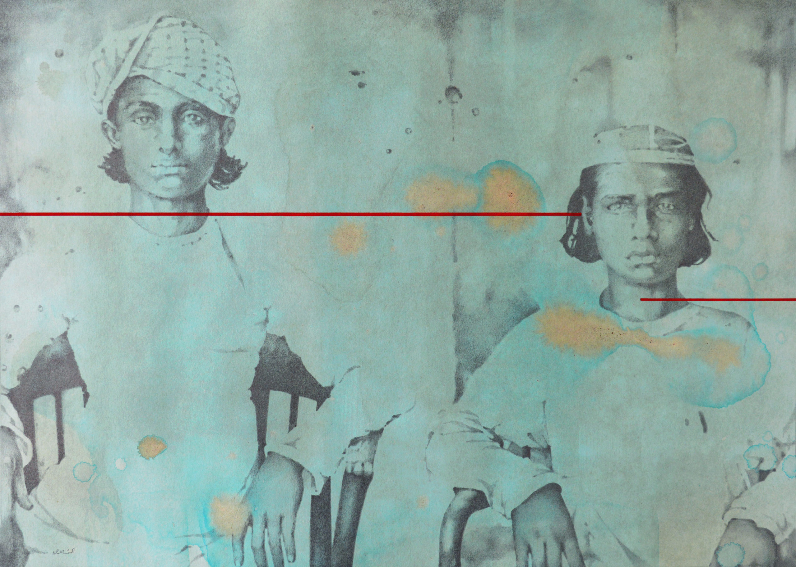 Previous Image Next Image Asif Ahmed_ End of an Era Bygone Glory Watercolor, Tea stains and Graphite on paper Size: 17” x 24” Year: 2019